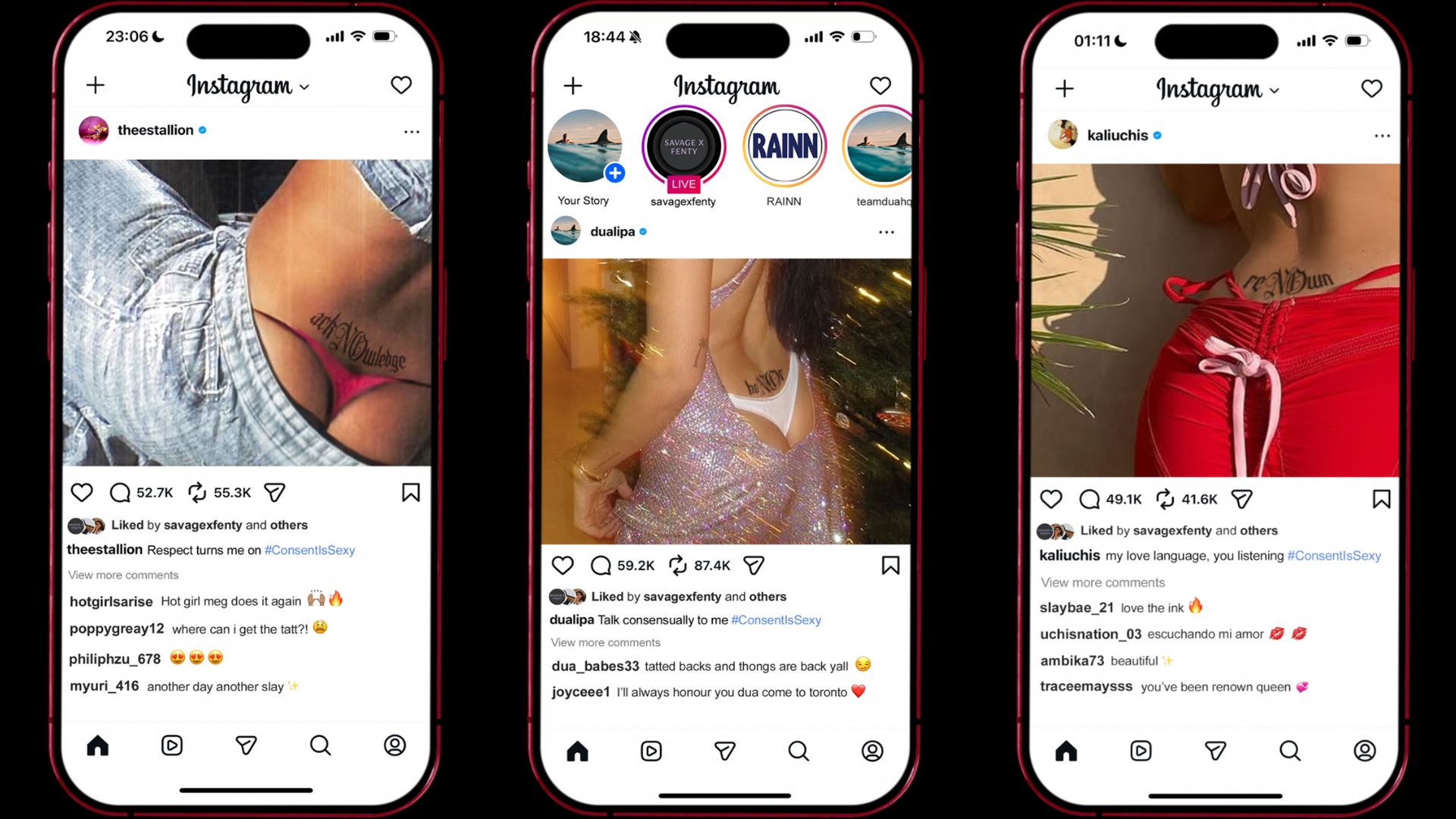 Meghan Thee Stallion: Wears fake tattoos often, and known to show off her lower back ~32.7M followers